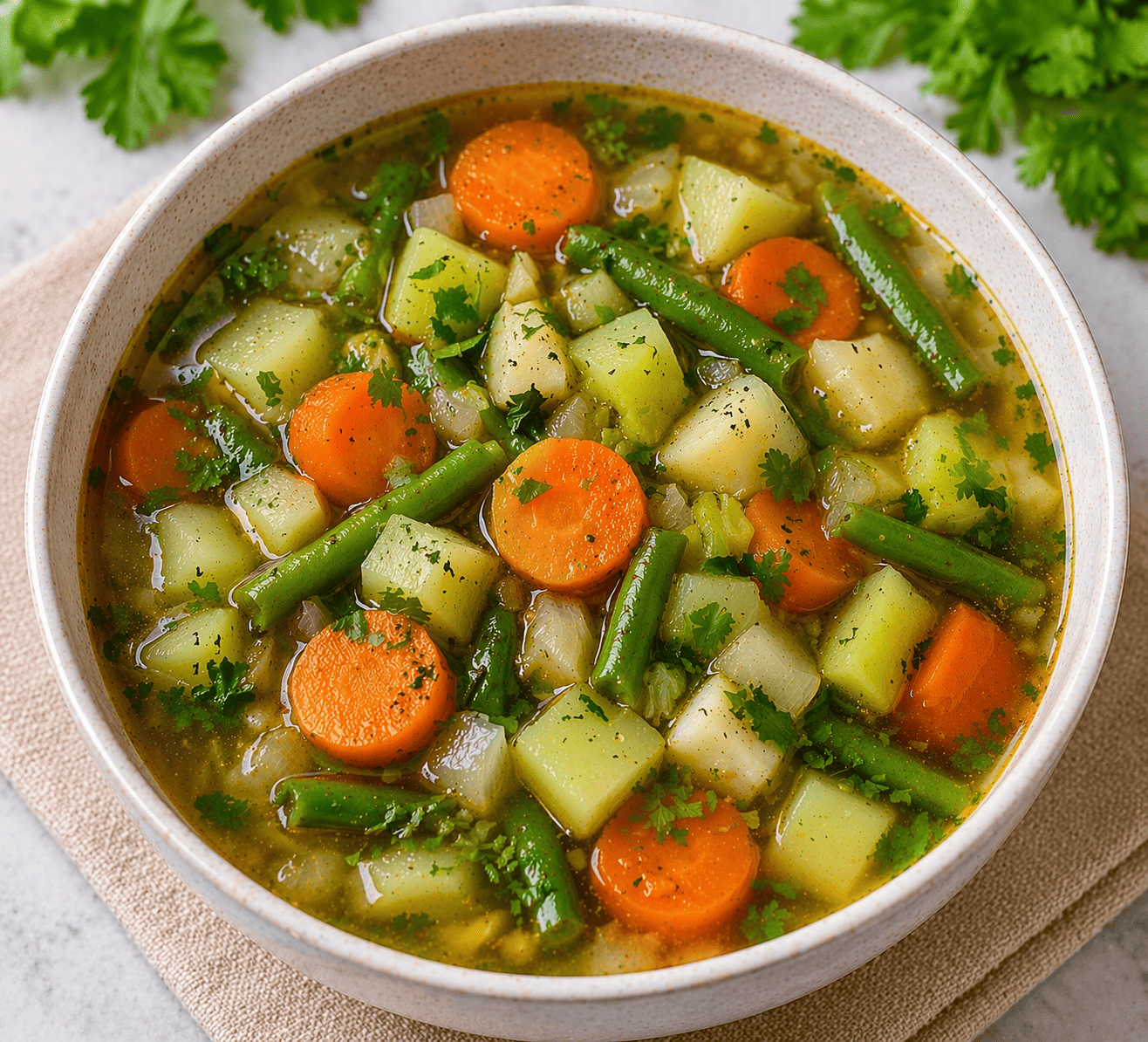 Esta sopa de verduras para bajar de peso es baja en calorías, llena de fibra y lista en 25 minutos. Perfecta para cenar sin culpa y perder peso de forma saludable.